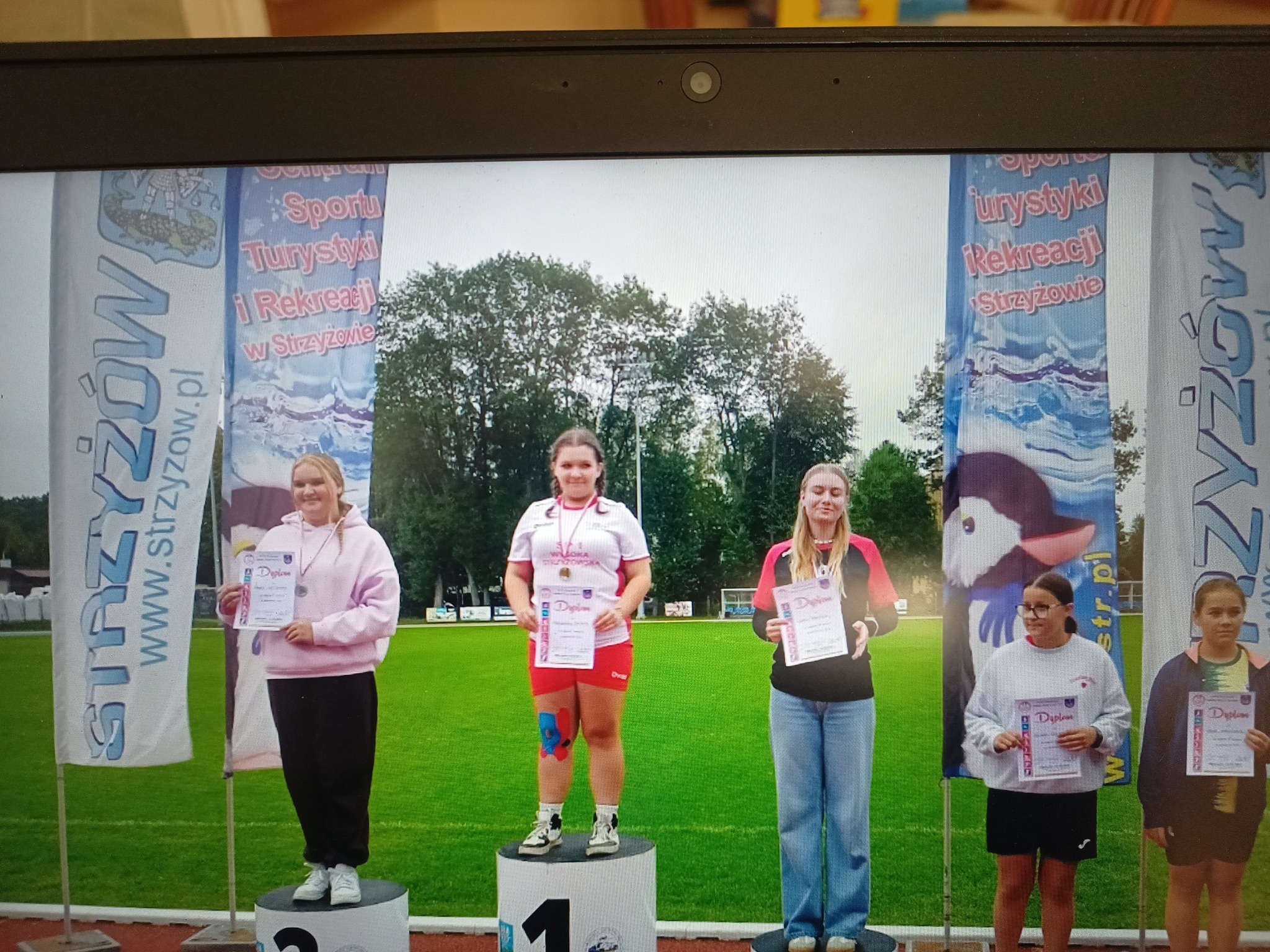 Wiktoria Pałucka w zawodach powiatowych, które odbyły się 23 września na Stadionie Miejskim w Strzyżowie, zajęła III miejsce w pchnięciu kulą.